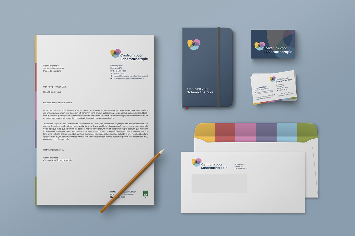 Voor het Centrum voor Schematherapie ontwikkelde Studio Nanaa een complete visuele identiteit. Dit omvatte het nieuwe logo, aanvullende logo’s voor kenniscentrum CvS Academy en de online omgeving MijnCentrum, evenals de volledige branding en een bijpassende interieurhuisstijl. Deze interieurstijl is toegepast op de nieuwe locatie in de Haagse Arc in Den Haag en biedt houvast in kleur, materiaal en herkenbaarheid. Daarnaast is het hiermee mogelijk om de stijl eenvoudig door te trekken naar toekomstige verdiepingen of locaties.